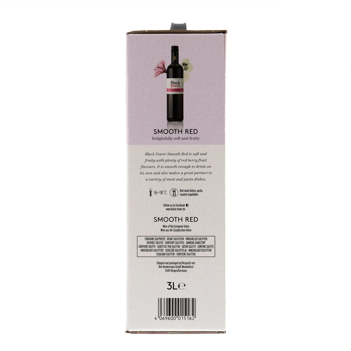 Black Tower Smooth Red er en indbydende rødvin fra Tyskland med en frugtdrevet karakter og en blød, tilgængelig profil. Med 12% alkohol fremstår den let i kroppen, men alligevel velafbalanceret, hvilket gør den velegnet til både hverdag og uformelle sammenkomster.